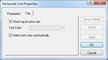 - To show the tag indicating the price level on the price axis, select the Show tag