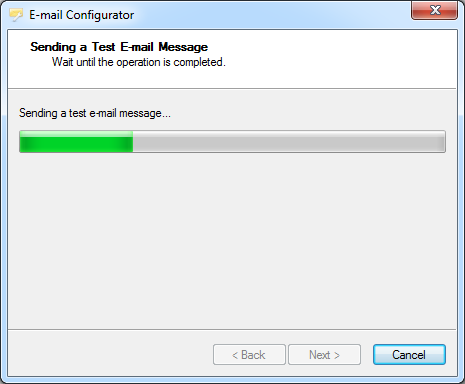 Step 7: Wait while the Sending a Test E-mail Message progress page is being displayed.